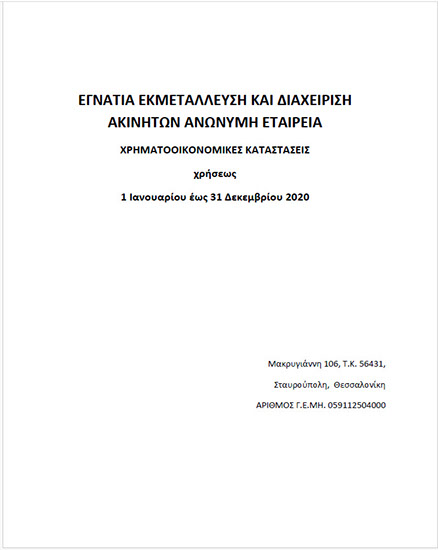 Για να κατεβάσετε τις Χρηματοοικονομικές Καταστάσεις του 2020 πατήστε εδώ