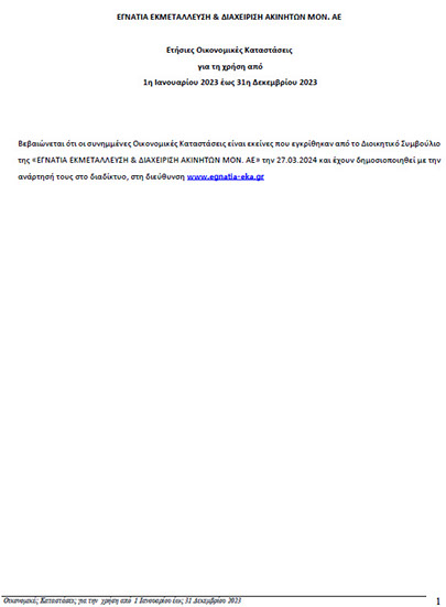 Για να κατεβάσετε τις Χρηματοοικονομικές Καταστάσεις του 2023 πατήστε εδώ