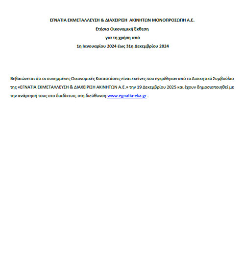 Για να κατεβάσετε τις Χρηματοοικονομικές Καταστάσεις του 2024 πατήστε εδώ